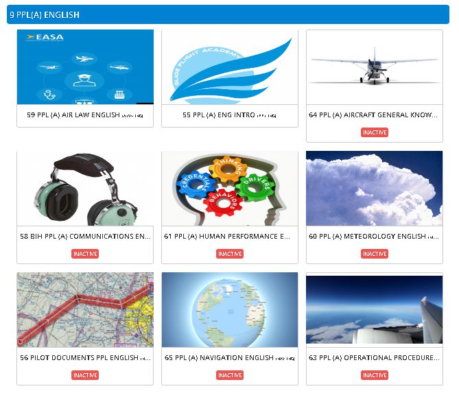 After finishing general lessons you will have 10 subjects for PPL (A), Nine of theory subjects you can learn randomly and one is subject of video of practical flying lessons.
